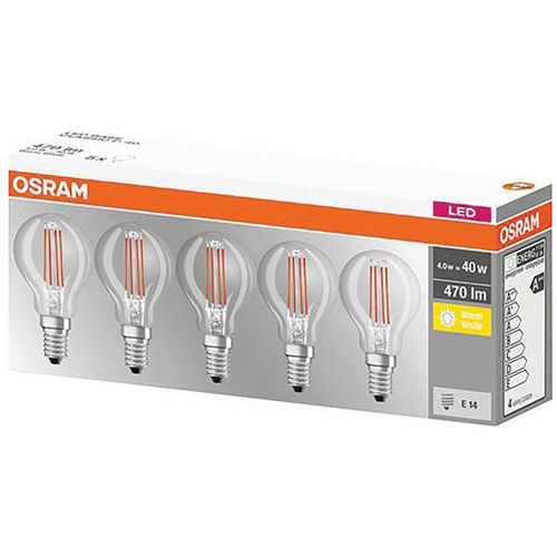 | Intitulé du produit | Led Sph Clair Fila.4W E14 Chd Bt5, Flux lumineux: 470 lm, Type de culot: E14 |