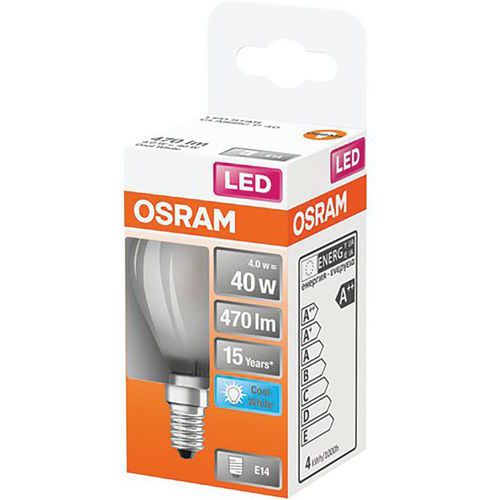 | Intitulé du produit | Led Sph Ver.Dep 4W E14 Frd Bte, Flux lumineux: 470 lm, Type de culot: E14 |