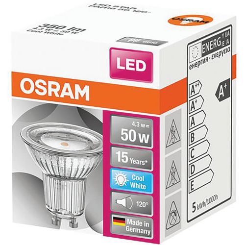 | Intitulé du produit | Led Spot Gu10 4.3W 350Lm Boite, Flux lumineux: 350 lm, Type d'ampoule: Ampoule ou module à led |