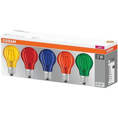 | Intitulé du produit | Led Std Color Box 1.6W E27 Bt1, Flux lumineux: 136 lm, Type de culot: E27, Protection IP: IP 20 |