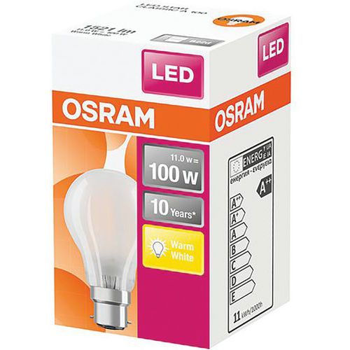 | Intitulé du produit | Led Std Ver.Dep 11W B22 Chd Bt1, Flux lumineux: 1521 lm, Type de culot: B22 |
