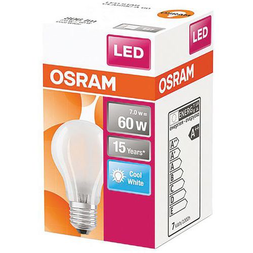 | Intitulé du produit | Led Std Ver.Dep 7W E27 Frd Bt1, Flux lumineux: 806 lm, Type de culot: E27, Couleur de la lumière: Blanc froid |