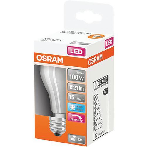 | Intitulé du produit | Led Std Ver.Dep Dim 12W E27 Frd Bte, Flux lumineux: 1521 lm, Type de culot: E27 |