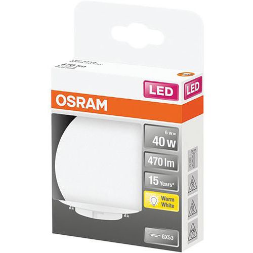 | Intitulé du produit | Led Ver.Dep 6W Gx53 Chd Bte, Flux lumineux: 470 lm, Type de culot: GU5.3 |