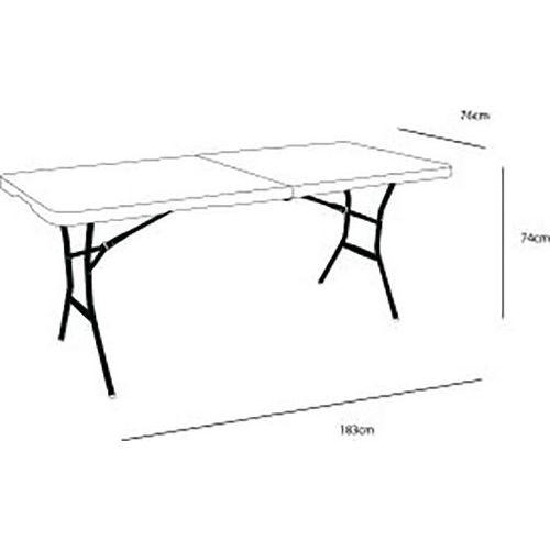 | Intitulé du produit | Lifetime Table rectangulaire pliante valise, Type de piétement: En L, Hauteur: 74 cm, Largeur: 183 cm |