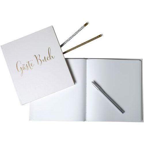 | Intitulé du produit | Livre d'or 140 pages tranche or Allemand, Couverture coloris: Blanc, Largeur: 190 mm, Papier coloris: Blanc |