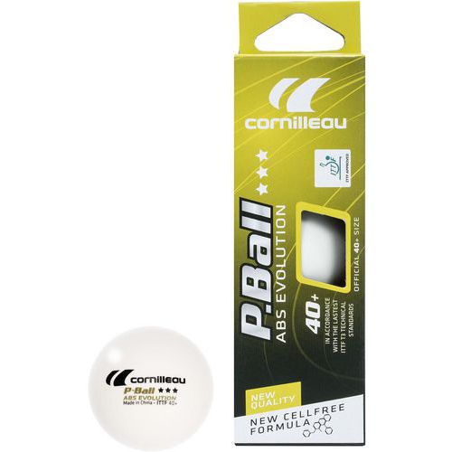 | Intitulé du produit | Balle tennis de table P-ball evolution 40+- Lot de 3, Niveau d'utilisation: Compétition, Coloris: Blanc |
