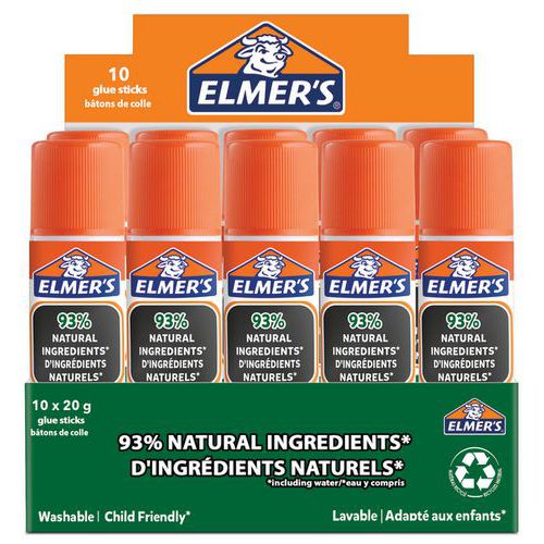 Lot de 24 bâtons de colle 8g Elmer's . Lavable et adapté aux enfants. Une colle 93% naturelle