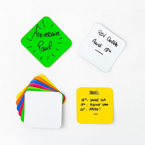 | Intitulé du produit | Lot de 12 Pense-bêtes magnétiques colorés, Largeur: 8 cm, Longueur: 8 cm, Sélection télétravail: oui |