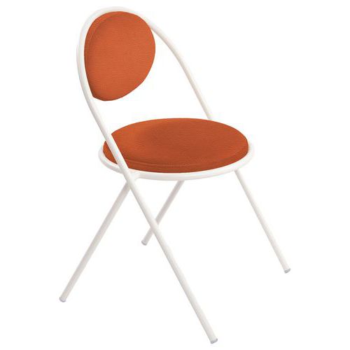 Design contemporain Seconde Vie : Possibilité de changer assise et dossier pour une durée de vie infinie, non déhoussable Empilable Structure: tube Ø20 mm en acier 100% recyclé, finition époxy Assise: panneau contreplaqué, épaisseur 12 mm Garniture: mousse polyuréthane 30 kg/m3, épaisseur 30 mm