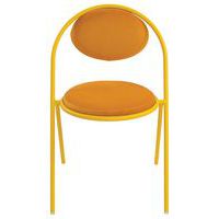 Design contemporain Seconde Vie : Possibilité de changer assise et dossier pour une durée de vie infinie, non déhoussable Empilable Structure: tube Ø20 mm en acier 100% recyclé, finition époxy Assise: panneau contreplaqué, épaisseur 12 mm Garniture: mousse polyuréthane 30 kg/m3, épaisseur 30 mm