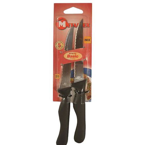 | Intitulé du produit | Lot de 2 couteaux à steak micro dents Metaltex, Type: Couteau à steak, Matériau: Inox, Coloris: Rouge |