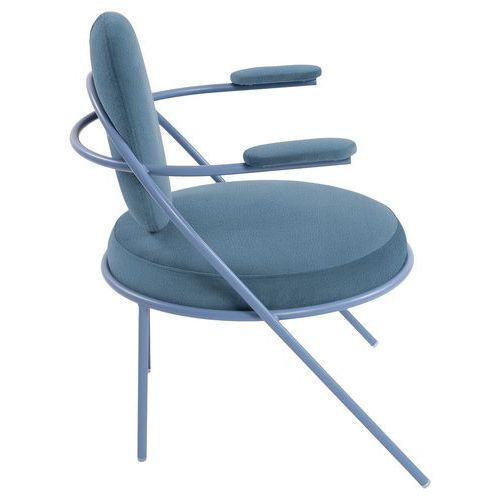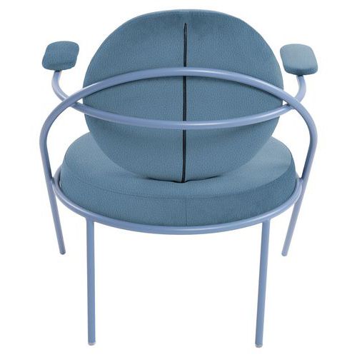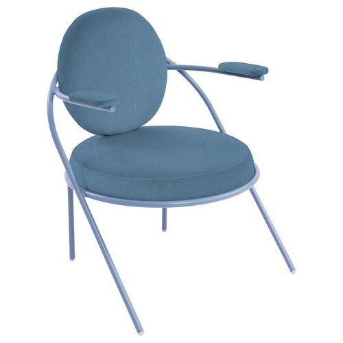 Design contemporain Seconde Vie : Possibilité de changer assise et dossier pour une durée de vie infinie, non déhoussable Empilable Structure: tube Ø20 mm en acier 100% recyclé, finition époxy Assise: panneau contreplaqué, épaisseur 12 mm Garniture assise: mousse polyuréthane 30 kg/m3, épaisseur 70 mm Garniture dossier: mousse polyuréthane 30 kg/m3, épaisseur 60 mm Garniture accoudoir: mousse polyuréthane 30 kg/m3, épaisseur 15 mm