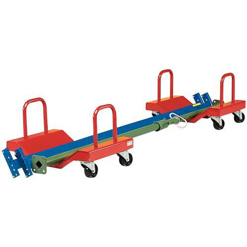 | Intitulé du produit | Lot de 2 rouleurs pour charges longues, Force: 1000 kg, Longueur hors tout: 500 mm, Largeur hors tout: 710 mm |