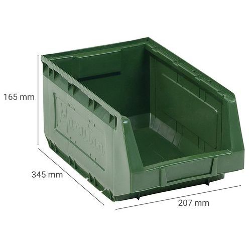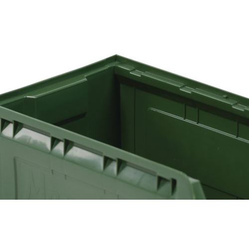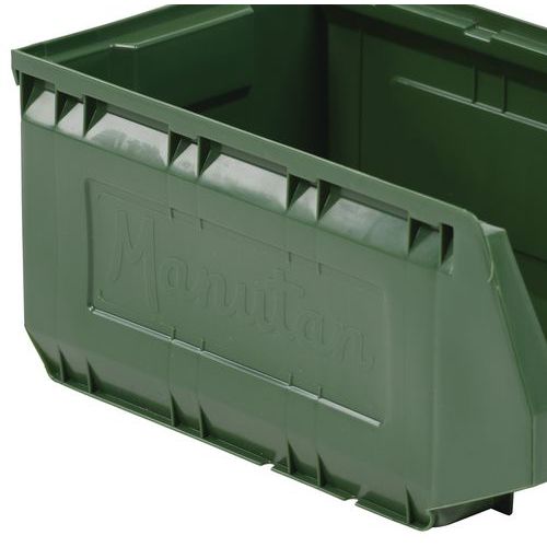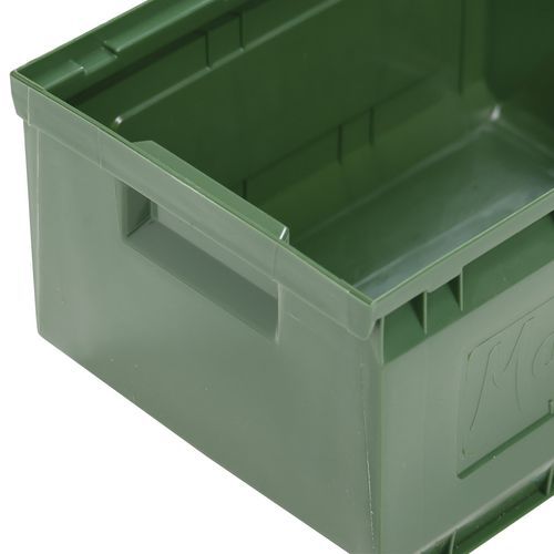 Rebords avec plots de blocage pour stabilité au gerbage. Grande robustesse grâce à ses nervures latérales. Fond plat et antidérapant pour une prise facile. Excellente prise en main par poignée avant. Bac plastique haute résistance aux chocs. Identification facile via porte-étiquette.