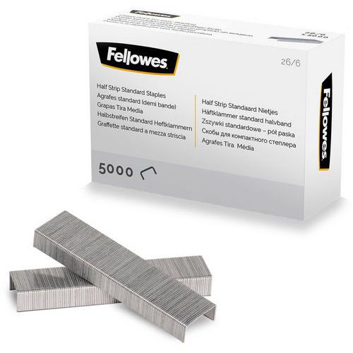 | Intitulé du produit | Lot de 5000 agrafes 26/6 demie bande 54 mm, Capacité d'agrafage (nb de feuilles): 25, Longueur: 80 mm |