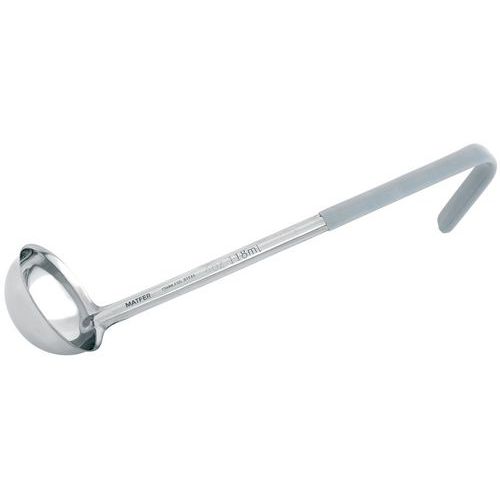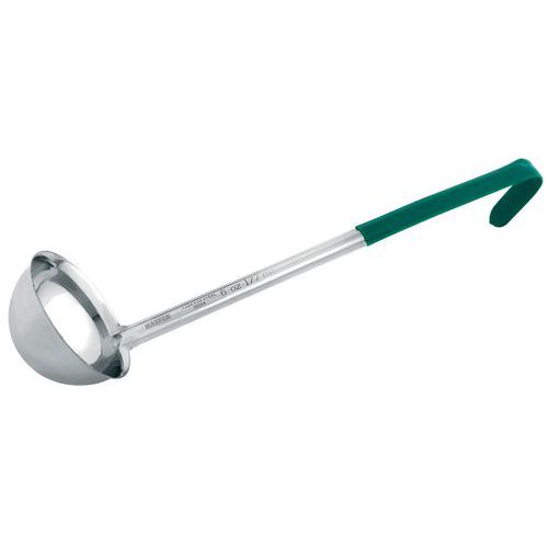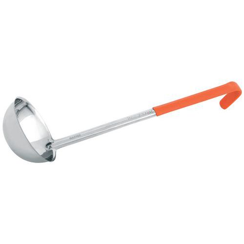 Louche inox à manche PVC de couleur.