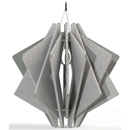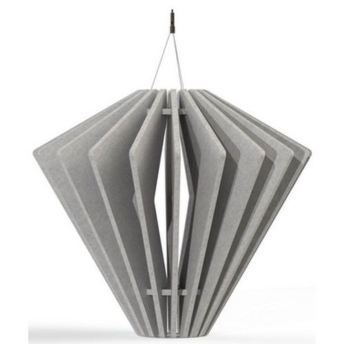 Luminaire acoustique au design iconique et élégant. Coloris chics et intemporelles. Eclairage Standard : douille culot E27. Performance acoustique certifiée : αw= 0,85 - Class B - PV en alpha w. Transport à plat. Montage simple et rapide.