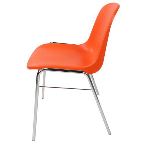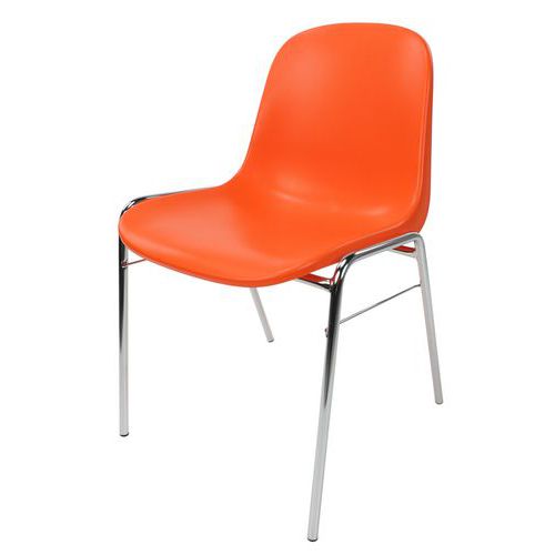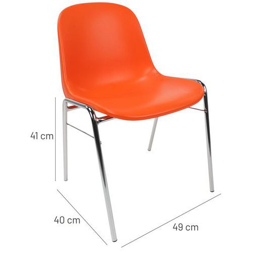 Chaise empilable par 10. Alternative aux énergies fossiles. Patins de protection antidérapants. Monocoque robuste en polypropylène injecté. Supporte une charge maximum de 90 kg.
