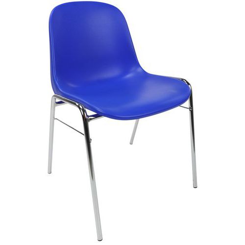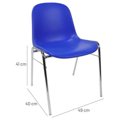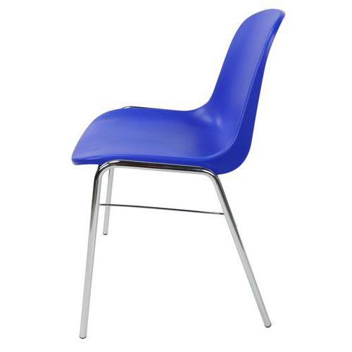 Chaise empilable par 10. Alternative aux énergies fossiles. Patins de protection antidérapants. Monocoque robuste en polypropylène injecté. Supporte une charge maximum de 90 kg.
