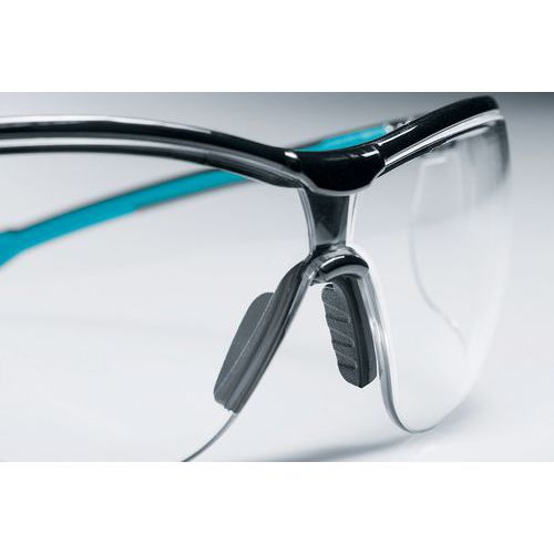 Pont de nez ajustable et extrêmement souple et embouts de branches souples et antidérapants offrant un maintien sûr et sans point de pression.