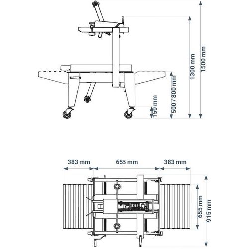 | Intitulé du produit | Machine à poser l'adhésif entrainement latérale, Pour colis largeur maxi: 50 mm |