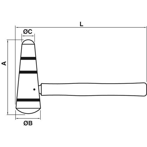 Maillet forme carotte en bois comprimé avec frettage encastré en fibre de verre.