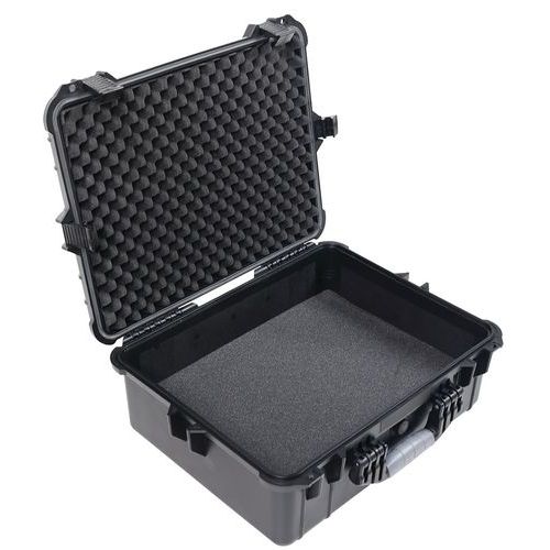 Mallette antichoc étanche à l’eau et à la poussière. Intérieur tapissé de mousse crantée ultra-protectrice. Équipée de charnières acier inox autobloquantes à 90°. Verrouillage par mise sous pression bouton sous poignée. Fond mousse prédécoupée épousant toutes formes d'objet.