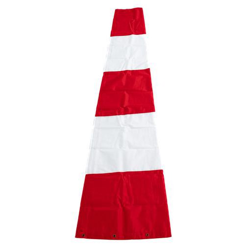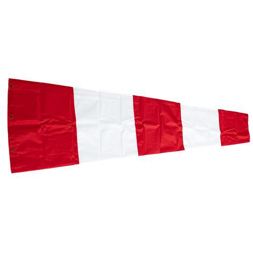 Manche à air en tissu étanche permettant d’indiquer la direction du vent ainsi que sa force. Les bandes de couleur orange et blanche alternées, une fois gonflées, correspondent à une vitesse estimée de 5 nœuds (soit aux alentours de 9 km/h). Lorsque le manche à air se retrouve à l’horizontal, le vent souffle à approximativement 25 nœuds soit 45 km/h environ.