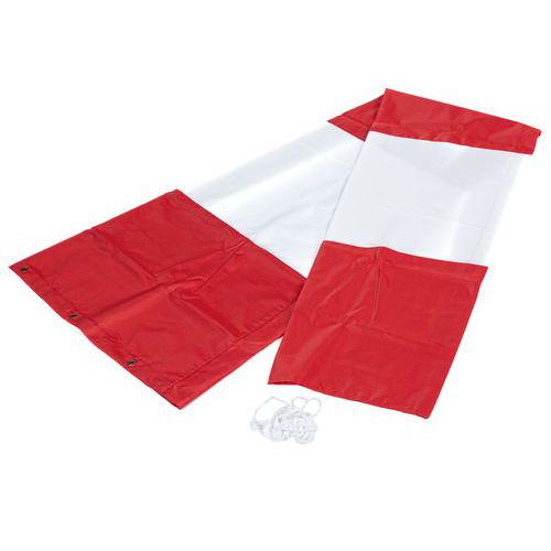 Manche à air en tissu étanche permettant d’indiquer la direction du vent ainsi que sa force. Les bandes de couleur orange et blanche alternées, une fois gonflées, correspondent à une vitesse estimée de 5 nœuds (soit aux alentours de 9 km/h). Lorsque le manche à air se retrouve à l’horizontal, le vent souffle à approximativement 25 nœuds soit 45 km/h environ.