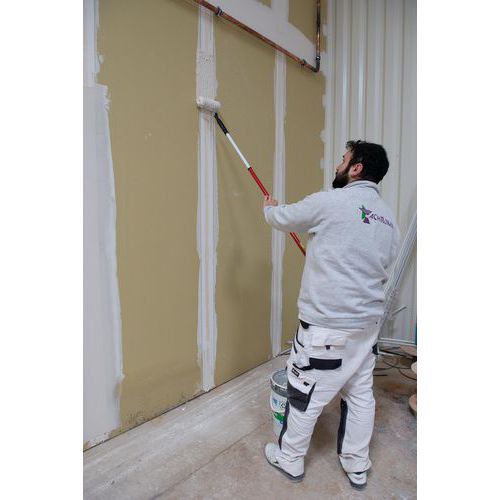- Rouleau en fibre polyamide de 16 mm qui assure une répartition homogène avec une épaisseur d’enduit constante facilitant le lissage final.