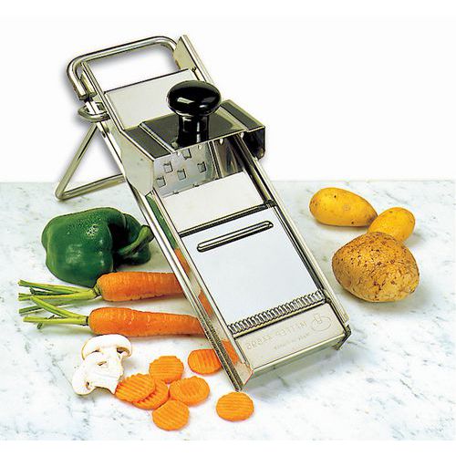 Permet de réaliser en quelques instants : émincés, chips, râpés, rondelles, gaufrettes, frites, pommes paille, juliennes, bâtonnets et cela en 3 tailles d’effilage.