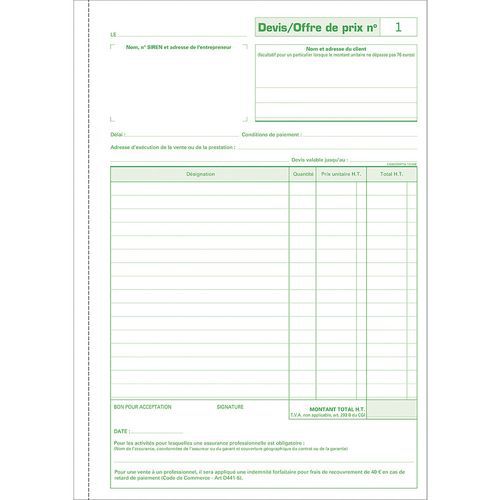 | Intitulé du produit | Manifold Devis Micro-entrepreneur 50 feuillets dupli autocopiants |