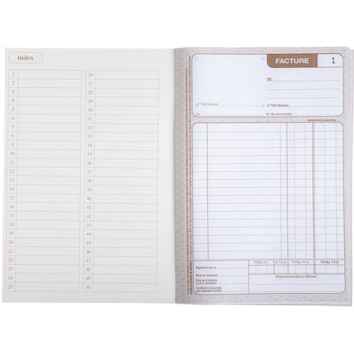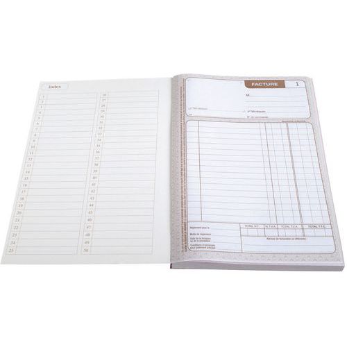 - Factures de 50 feuilles numérotées et autocopiants en 2 exemplaires (1 original et 1 copie).