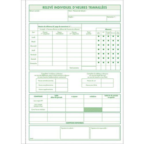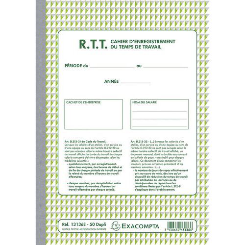 | Intitulé du produit | Manifold RTT Enregistrement temps travail 50 feuil. dupli autocopiants |