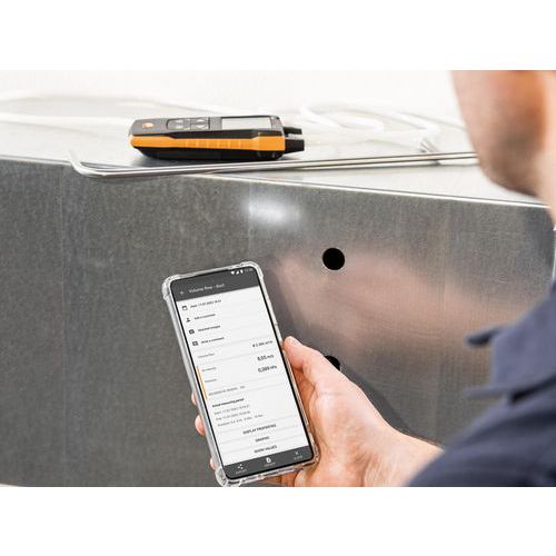 Calcul du débit volumique dans l’appareil de mesure et dans l’App.