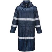 Manteau de pluie iona rain coat classic bleu marine léger et totalement imperméable. offre une visibilité accrue en raison d’une longueur supérieure. Capuche amovible. Des poches sécurisés ainsi que des œillets. Une fente au dos pour une meilleure respirabilité.