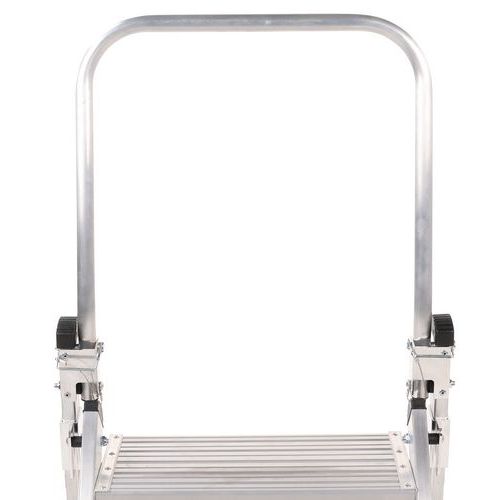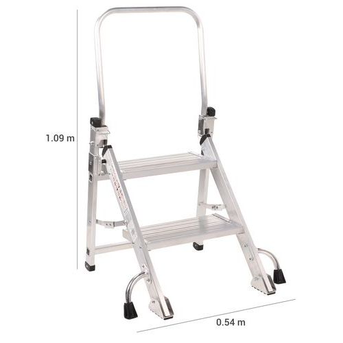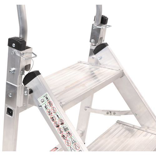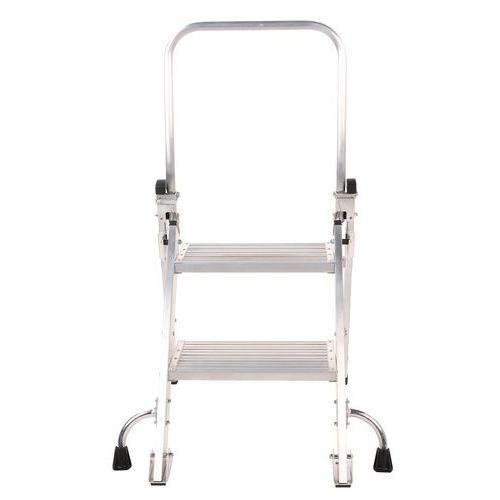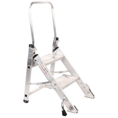 Marchepied léger et résistant à larges marches. Accès sécurisé avec garde-corps sur partie haute. Grande stabilité : double pieds au sol sur face avant. Rangement aisé avec pliage ultra-rapide de la structure. Antiglisse garanti avec pieds aluminium recouvert de caoutchouc.