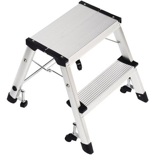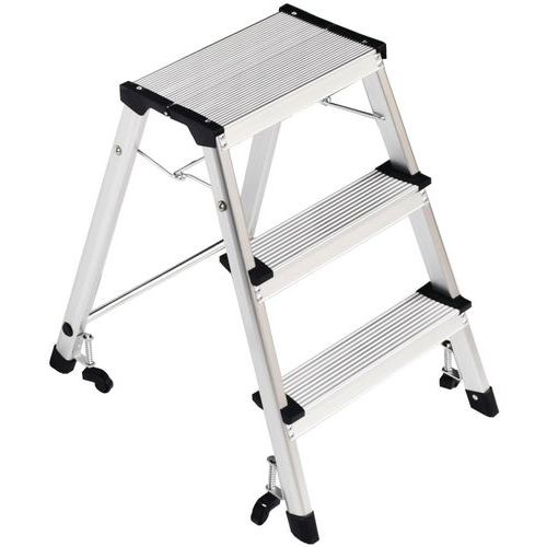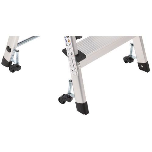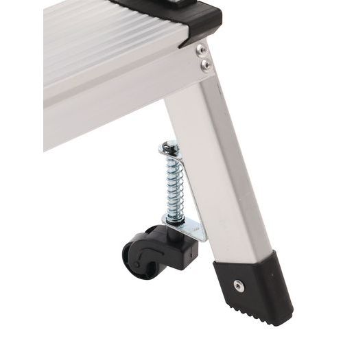 Marchepied pliable en aluminium simple accès. Confortable avec marches striées antidérapantes. Déplacement aisé avec 4 roulettes auto-rétractables.