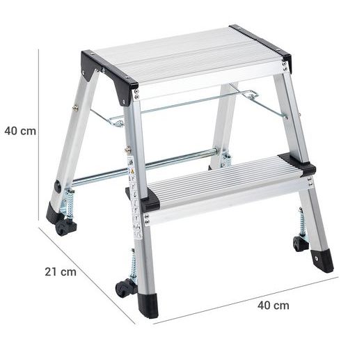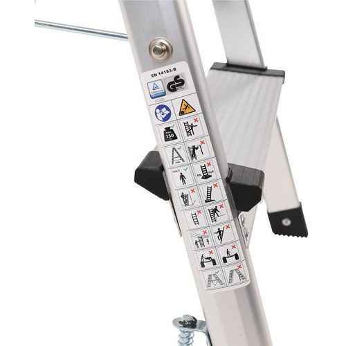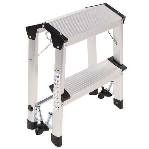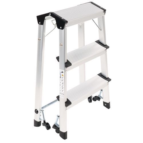 Marchepied pliable en aluminium simple accès. Confortable avec marches striées antidérapantes. Déplacement aisé avec 4 roulettes auto-rétractables. Charge maxi (kg) : 150 Garantie client : 10 ans