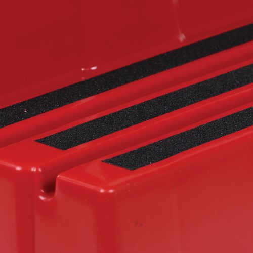 Marchepied simple et confortable. Larges marches antidérapantes. Bandes abrasives sécurisantes. Prise aisée avec les poignées. Monobloc, grande stabilité. Plot caoutchouc antidérapant placé sous chaque angle du marchepied.
