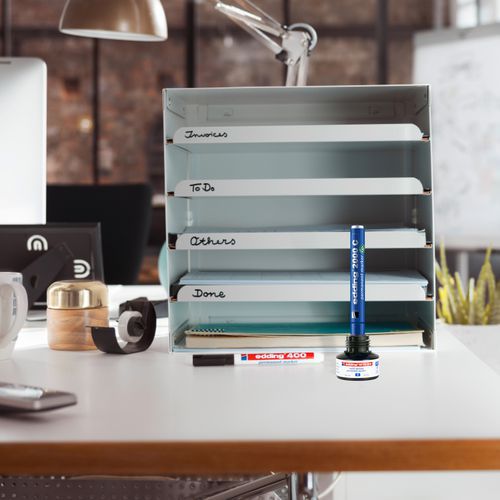 Résistant à l'eau. Séchage rapide. Marqueur à faibles odeurs. Encre indélébile non toxique, sans xylène ni toluène. Fabriqué en Allemagne