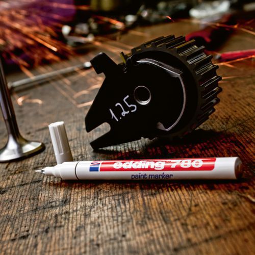Marqueur peinture - Edding 780 pour une écriture très couvrante et permanente même sur des matériaux foncés et transparents.
