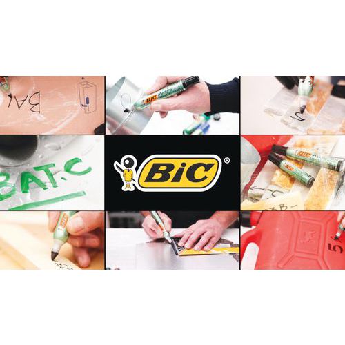Le feutre indélébile BIC Marking Onyx 1482 marque très lisiblement sur la plupart des surfaces : verre, bois, plastique, métal, carton. Idéal pour l'usage industriel et professionnel, sa pointe ogive large permet une épaisseur de trait constante et extrêmement visible. Adapté à un marquage en extérieur, son encre non toxique possède un fort pouvoir couvrant, sèche très vite et résiste à la décoloration. Pensé pour tous les travaux manuels intensifs, ce marqueur permanent de petite taille a un corps en métal très résistant.