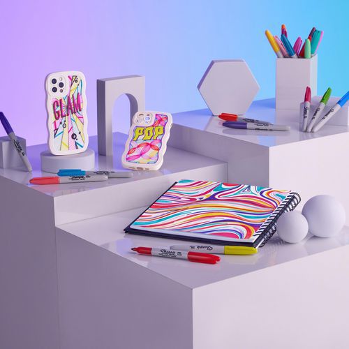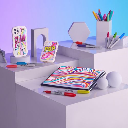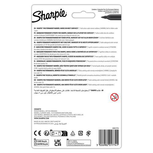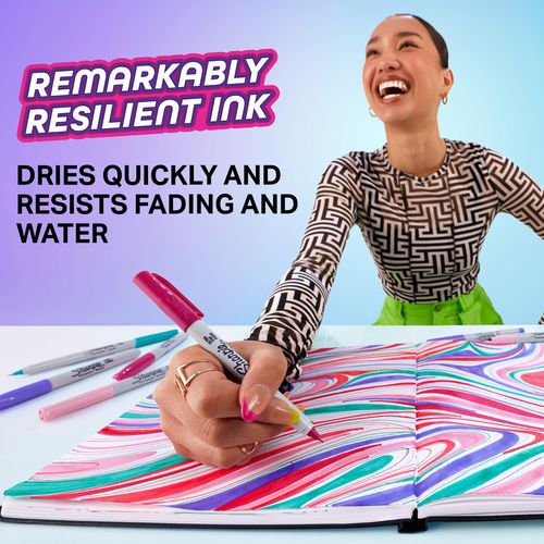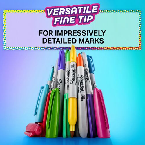 - Marqueurs permanents Sharpie Glam Pop. Pointe fine pour des détails audacieux. Couleurs assorties. Lot de 5 feutres.
