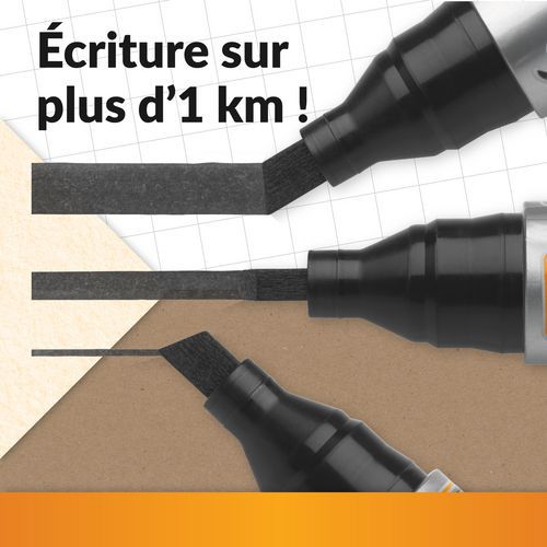 | Intitulé du produit | Marqueur permanent pointe biseautée, Encre coloris: Noir, Rechargeable: non, Rétractable: non |