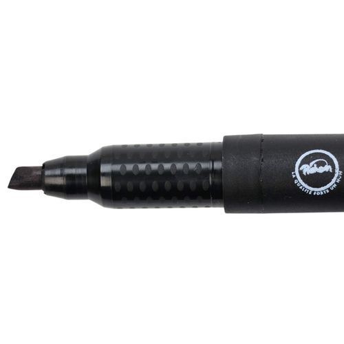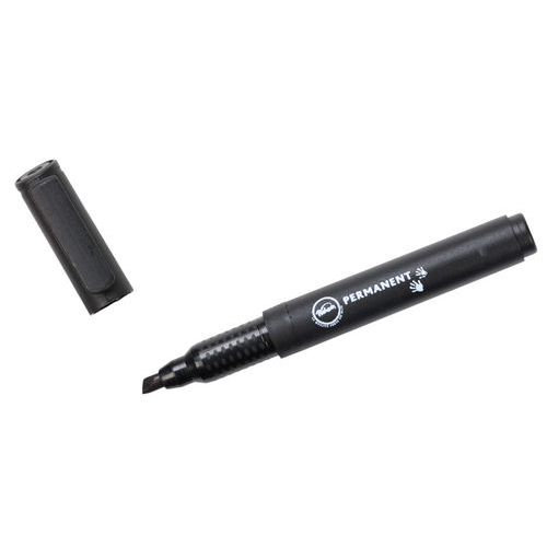 Marqueur permanent avec encre indélébile, adapté pour différents supports. Pointe biseautée assurant un trait régulier de 3,7 - 5,5 mm de largeur. Équipé d’un corps en plastique et d’un bouchon conçu pour préserver l’encre. Produit fabriqué à 72 % à partir de briques d’emballage alimentaire recyclées. Proposé en quatre coloris : bleu, noir, rouge et vert.