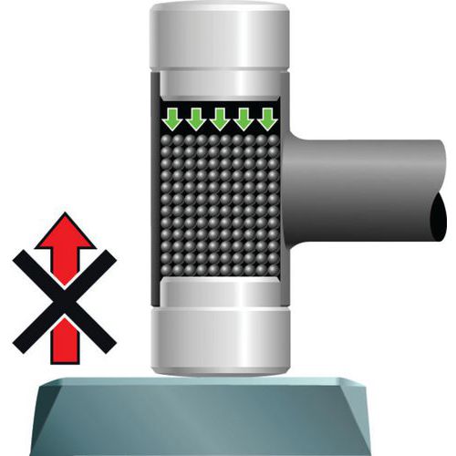 - Tête en polyamide lisse, résistante aux chocs et à l'usure, 75 Shore D, testé à -20° C