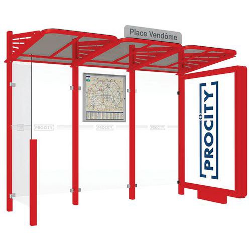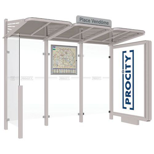 Abri bus Conviviale 3 m caisson lumineux droite bardage gauche Procity