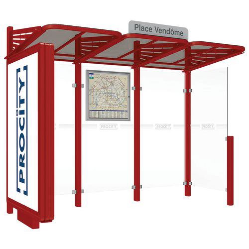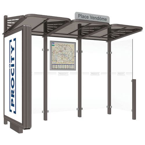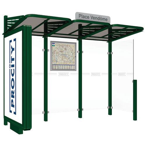 Abri bus Conviviale 3 m caisson lumineux gauche bardage droit Procity